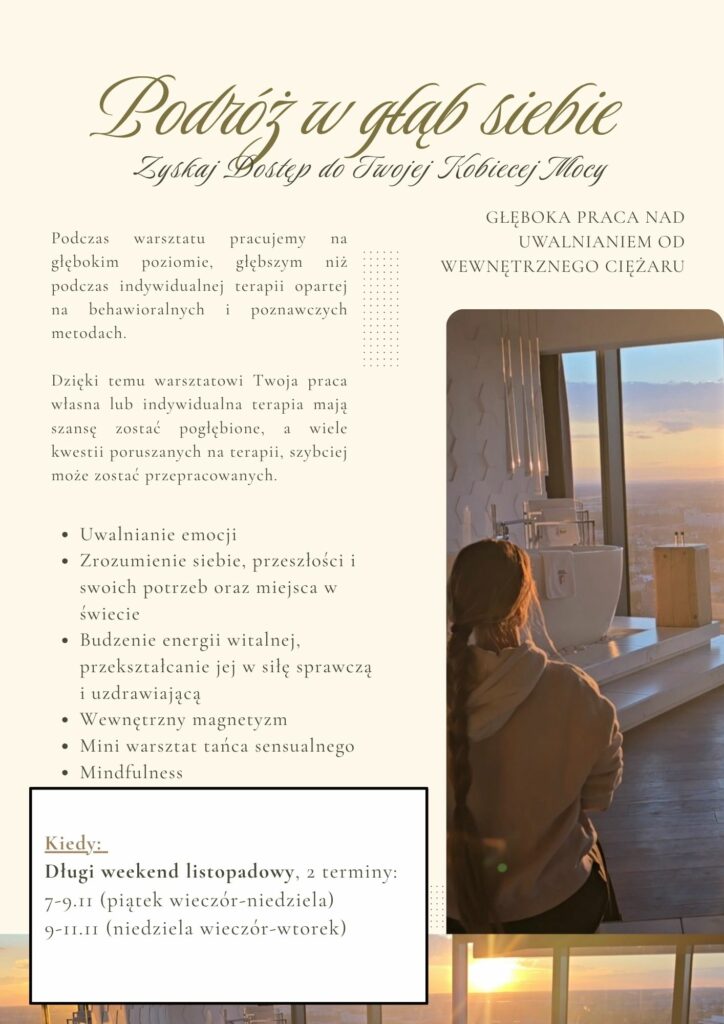 Pogłębiona praca nad sobą, z nieświadomością, trudnymi przeżyciami, uwolnienie od przeszłości, pobudzanie energii kreowania i realizacji celów i marzeń.